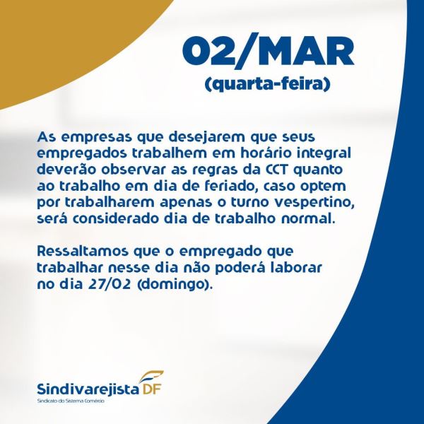 O Sindivarejista informa sobre o funcionamento do comércio durante o Carnaval de 2022.