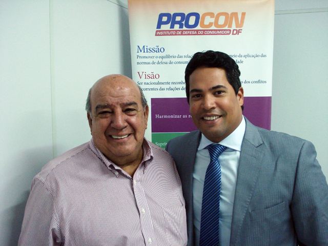 O novo diretor-geral do Instituto de Defesa do Consumidor (Procon-DF), Izaias Soares Pereira (Todi Moreno), recebeu em audiência o presidente do Sindicato do Comércio Varejista do DF – Sindivarejista -, Antonio Augusto de Moraes. Eles conversaram sobre os planos do Procon a serem colocados em prática nos próximos dias, visando defender os consumidores e orientar os lojistas de rua e de shoppings. As ações devem ser iniciadas antes do dia das mães – 12 de maio.