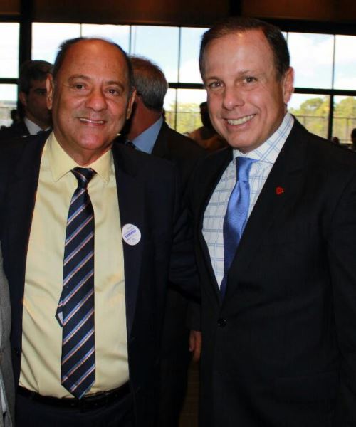 O Presidente do Sindivarejista, Edson de Castro, sendo recebido pelo prefeito Dória na última reunião da Lide em Brasília