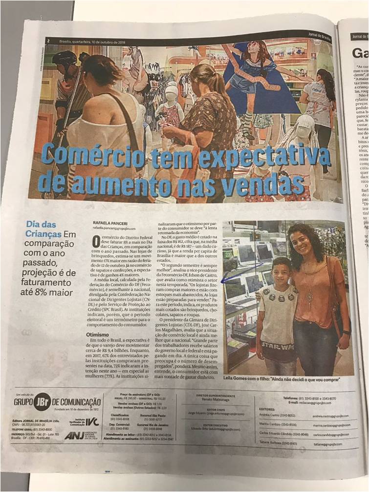 Matéria sobre vendas p/ o dia das crianças. Entrevista com o vice-presidente da Fecomércio, Edson de Castro, e outras lideranças.
