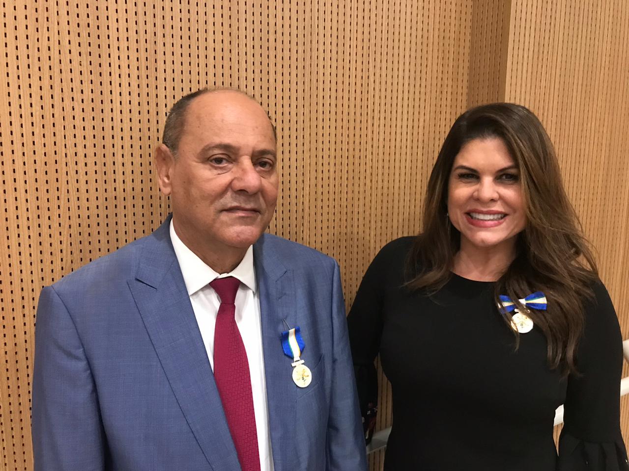 O presidente do Sindivarejista, Edson de Castro, e a conselheira Janine Brito foram agraciados hoje, com a Medalha do Mérito da Segurança Pública