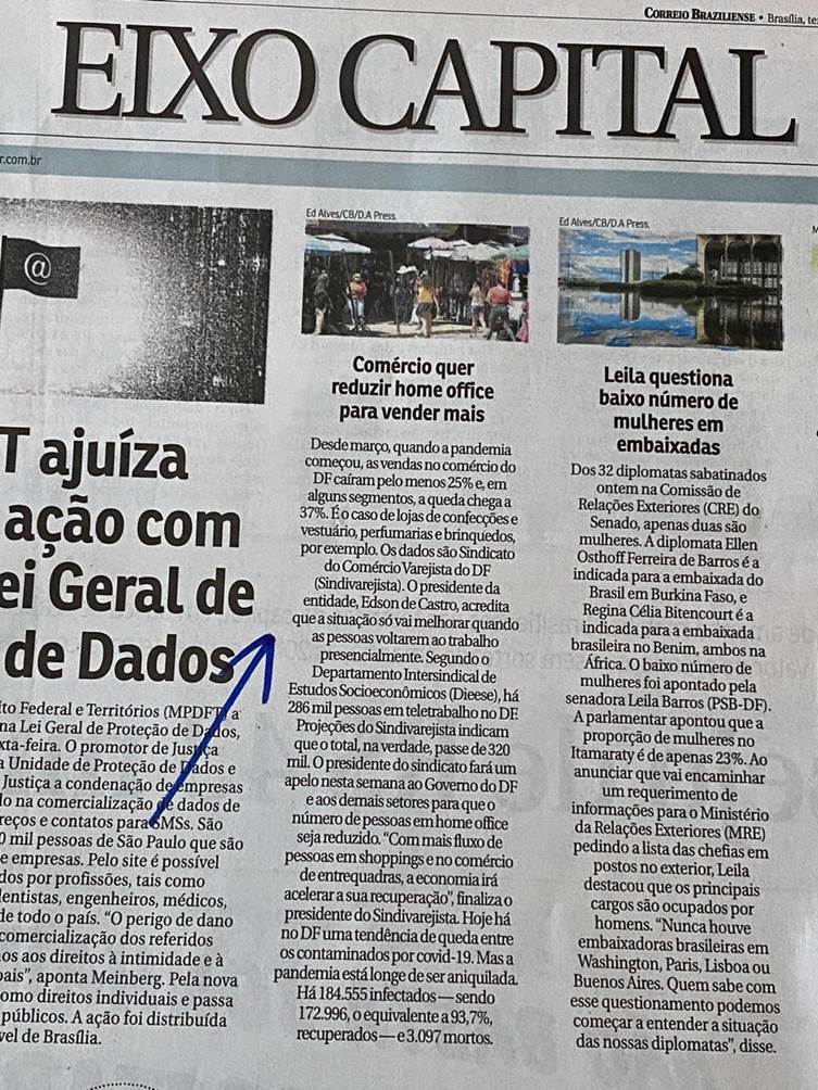 Coluna Eixo Capital: Nota sobre o presidente do Sindivarejista, Edson de Castro.