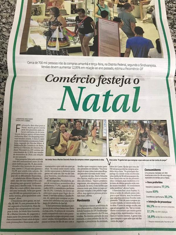 Matéria de página inteira sobre comportamento do comércio do DF às vésperas do Natal com depoimento do presidente do Sindivarejista, Edson de Castro.