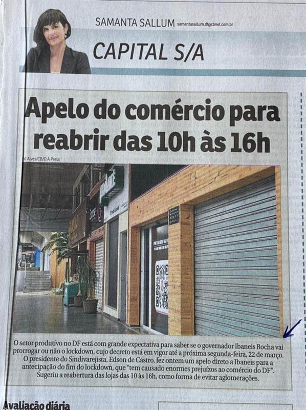 Nota sobre o comércio e o lockdown. Presidente do Sindivarejista, Edson de Castro é mencionado.