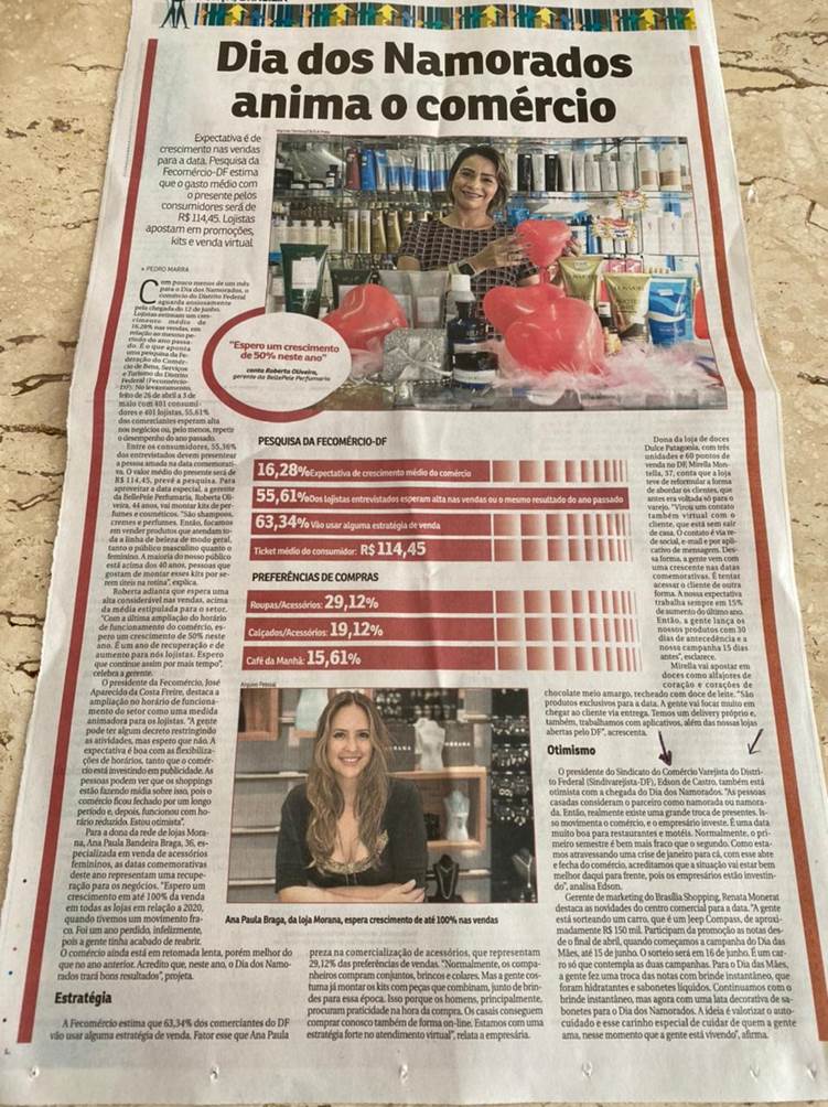 Matéria sobre o Dia dos Namorados com declaração do presidente do Sindivarejista, Edson de Castro.