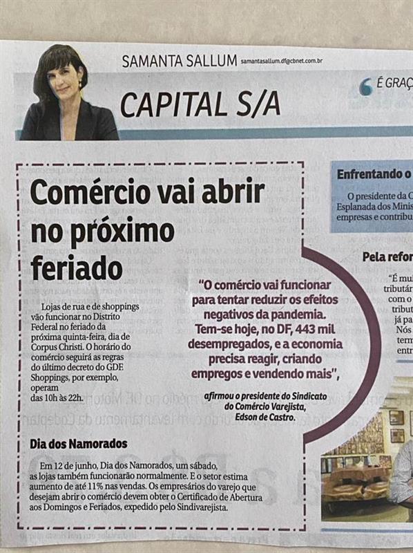 Capital S/A: Nota sobre abertura do comércio no feriado do dia. Declaração do presidente do Sindivarejista, Edson de Castro.