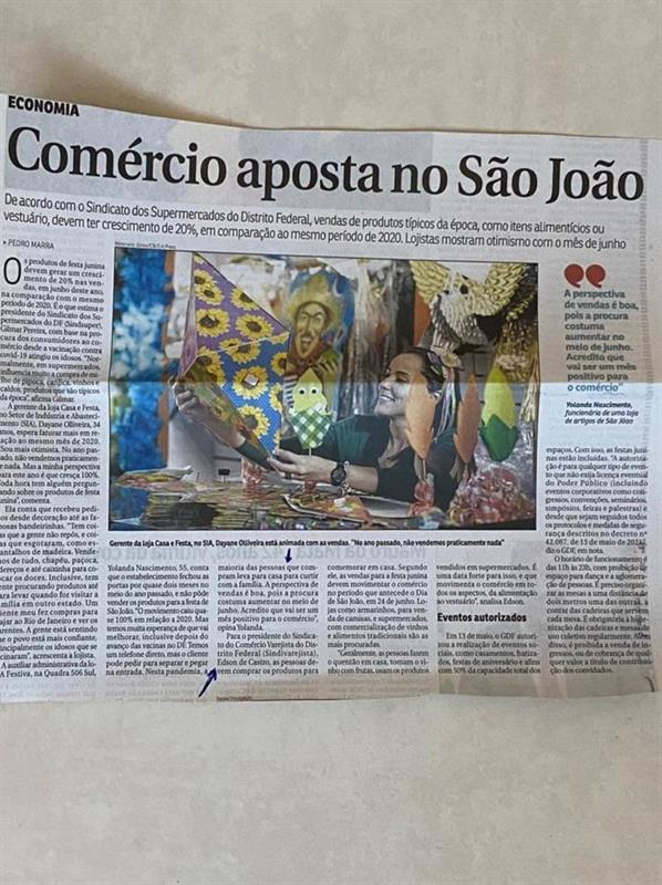 Matéria sobre vendas para festas juninas. Entrevista com o presidente do Sindivarejista, Edson de Castro.