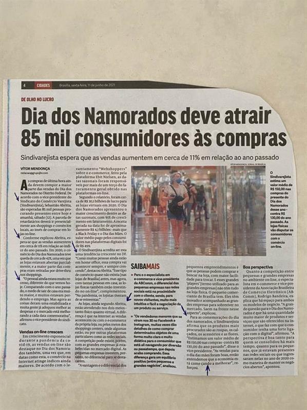 Matéria sobre sobre o dia dos namorados com entrevista do vice-presidente do Sindivarejista, Sebastião Abritta.