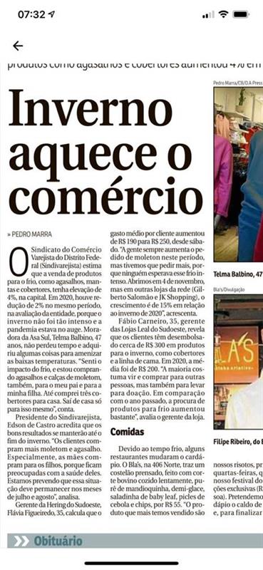 Matéria sobre efeitos do frio nas vendas do comércio. Entrevista do presidente do Sindivarejista, Edson de Castro.