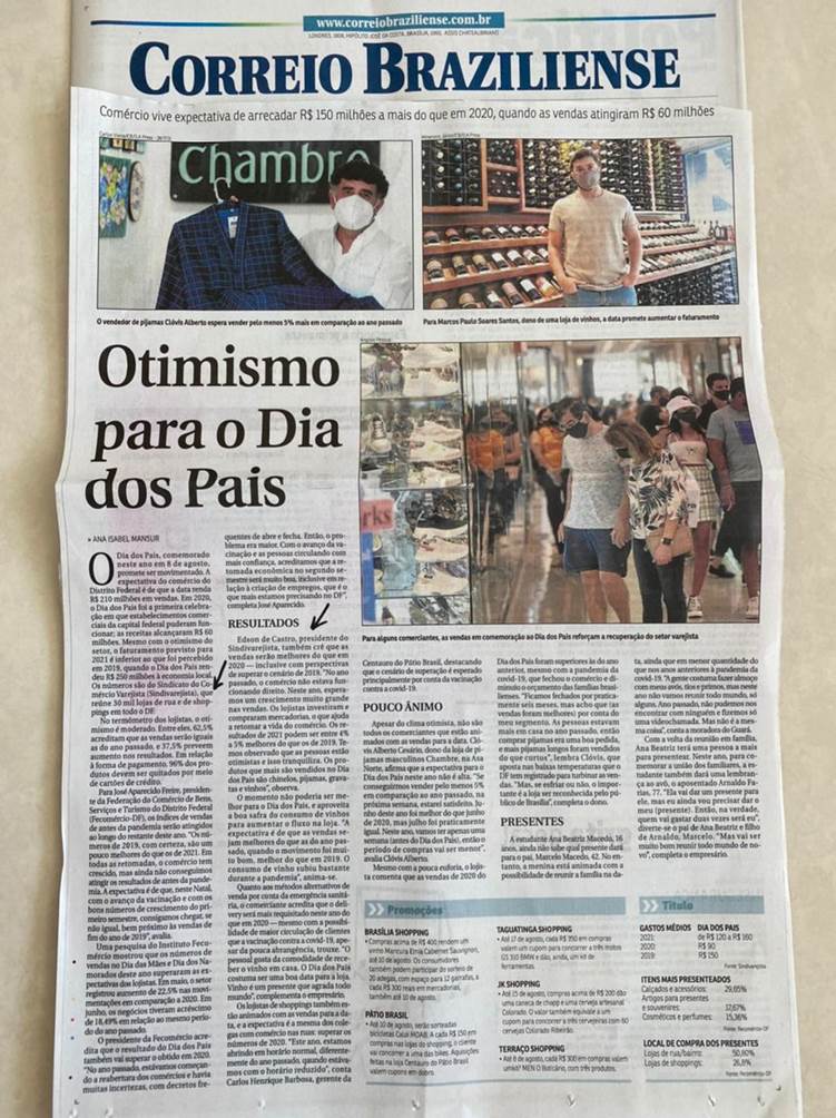 Matéria sobre expectativa do comércio para o Dia dos Pais. Presidente do Sindivarejista, Edson de Castro, é um dos entrevistados.