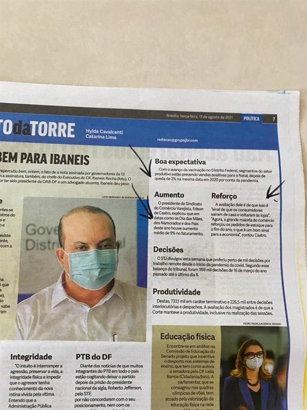 Do Alto da Torre: Nota sobre o comércio com o presidente do Sindivarejista, Edson de Castro, sendo mencionado.