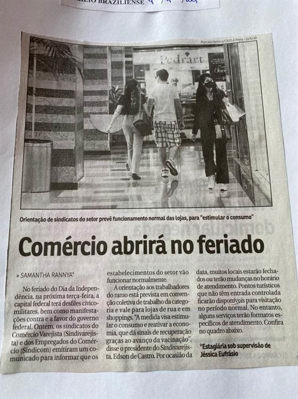 Matéria sobre abertura do comércio no feriado de 7/9.
