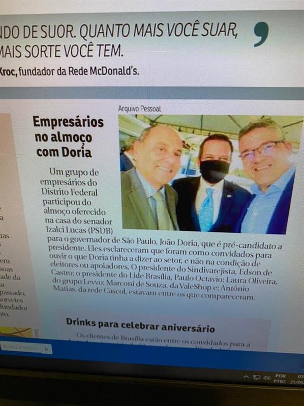 Eixo Capital: Nota sobre almoço em Brasília com empresários e o governador de SP, João Dória, com presença o presidente do Sindivarejista, Edson de Castro.