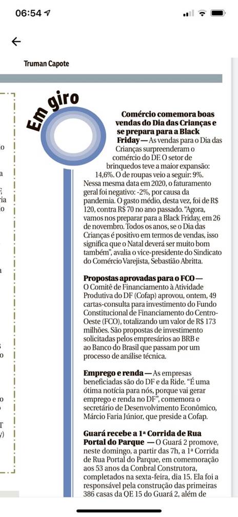 Capital S/A: Nota sobre o Sindivarejista com menção ao vice-presidente Sebastião Abritta.