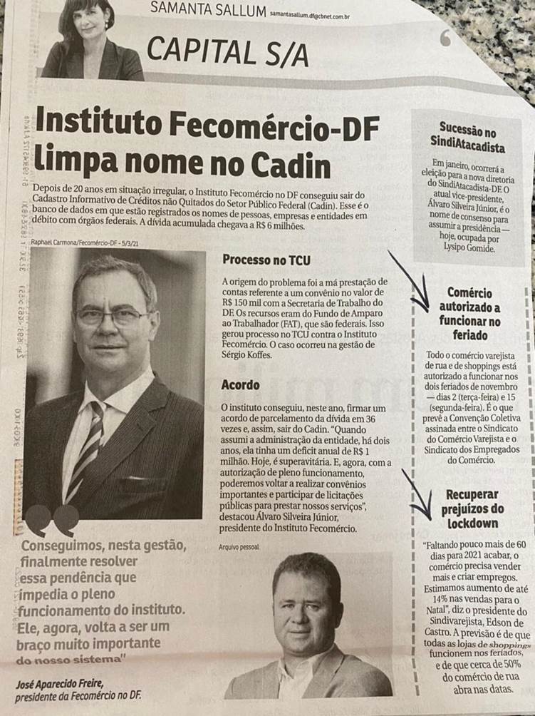 Notas sobre a abertura do comércio nos feriados de 2 e 15 de nov. E declaração do presidente do Sindivarejista, Edson de Castro.