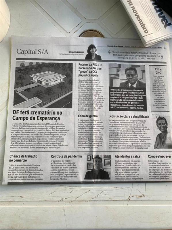 Nota sobre inscrições para trabalhadores temporários com declarações e foto do vice-presidente do Sindivarejista, Sebastião Abritta.