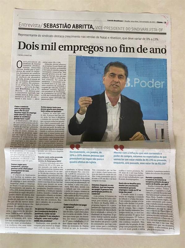 Matéria sobre geração de empregos. Entrevista com o vice-presidente do Sindivarejista, Sebastião Abritta.