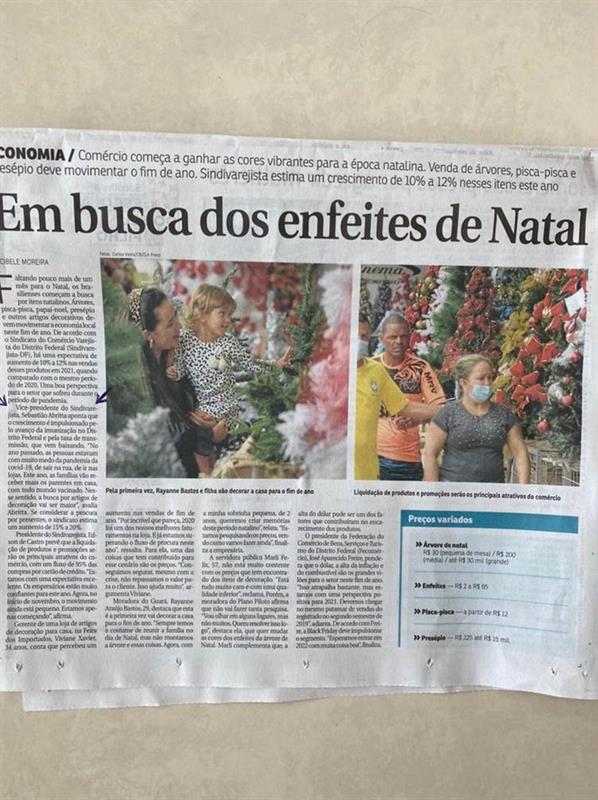Matéria sobre enfeites para o Natal. Declarações do vice-presidente do Sindivarejista, Sebastião Abritta.