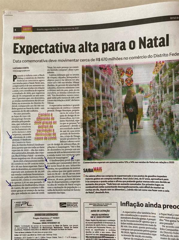 Matéria sobre vendas para o Natal. O presidente do Sindivarejista, Edson de Castro, e o vice-presidente, Sebastião Abritta, são entrevistados.