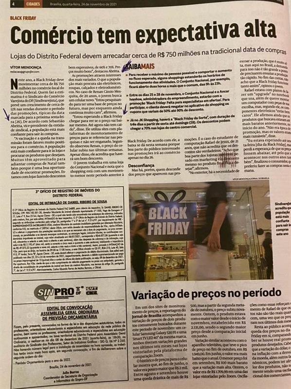 Matéria sobre efeitos da Black Friday. O vice-presidente do Sindivarejista, Sebastião Abritta, é entrevistado.