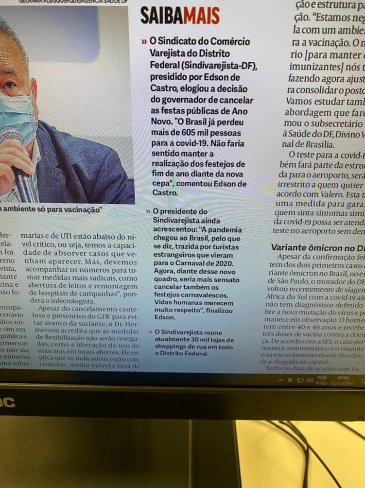 Nota sobre suspensão dos festejos de de fim de ano no DF. Declarações do presidente do Sindivarejista, Edson de Castro.