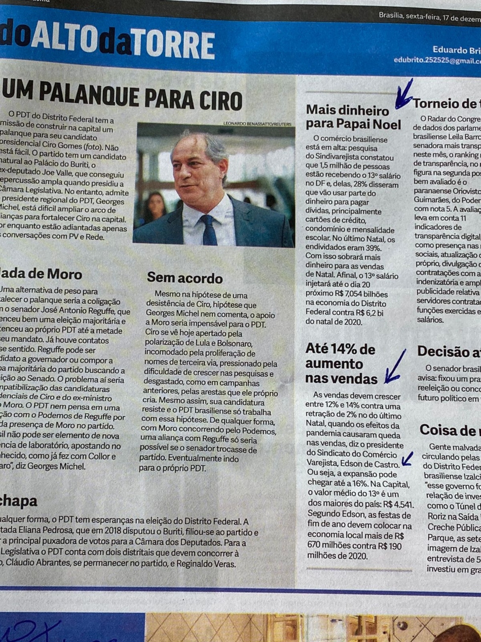 Do Alto da Torre: Notas sobre o Sindivarejista com declarações do presidente do Sindivarejista, Édson de Castro.