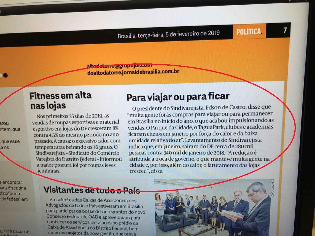 Coluna Do Alto da Torre: Matéria sobre vendas de início de ano com depoimento do presidente do Sindivarejista, Edson de Castro.