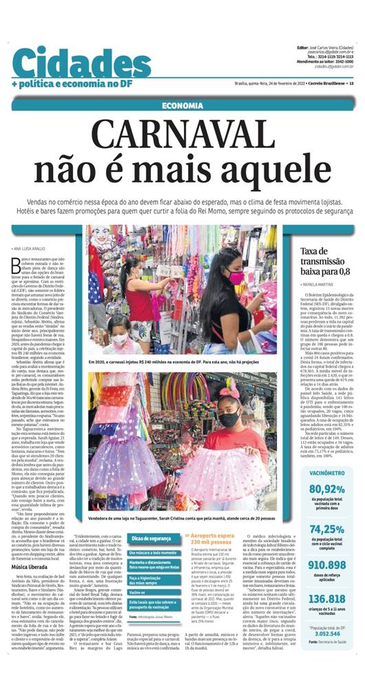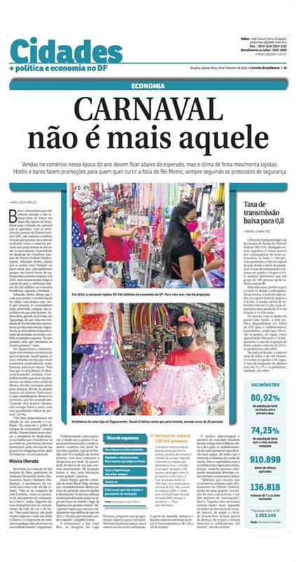 Matéria sobre vendas para o carnaval. Com declarações do presidente eleito do Sindivarejista, Sebastião Abritta.
