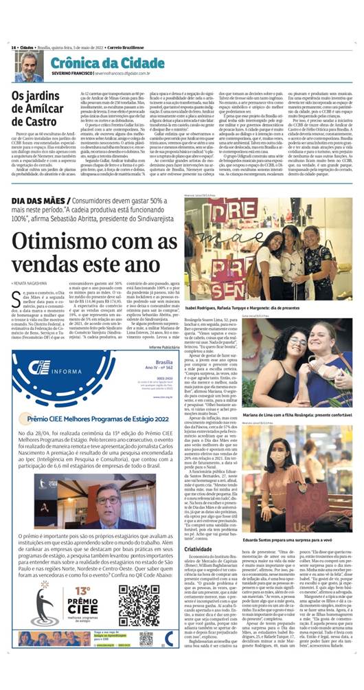 Matéria sobre o dia das mães. Presidente do Sindivarejista, Sebastião Abritta é entrevistado.