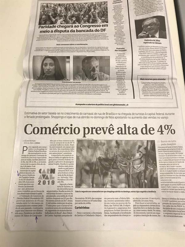 Matéria sobre vendas do comércio para o carnaval . Entrevista do presidente do Sindivarejista, Edson de Castro.