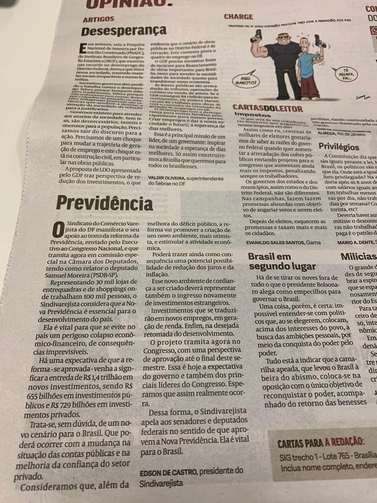 Artigo do presidente do Sindivarejista, Edson de Castro, sobre a Reforma da Previdência.