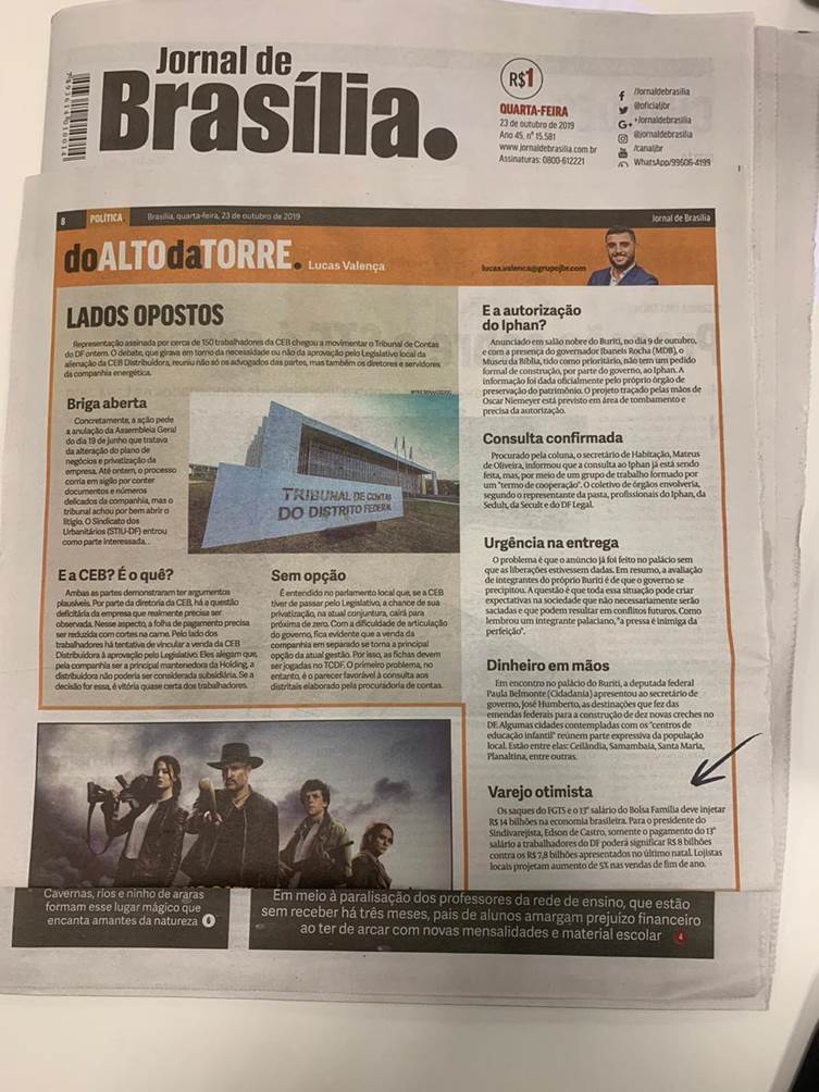 Coluna do Alto da Torre: Nota sobre recursos do FGTS liberados para trabalhadores. Citação do presidente do Sindivarejista, Edson de Castro