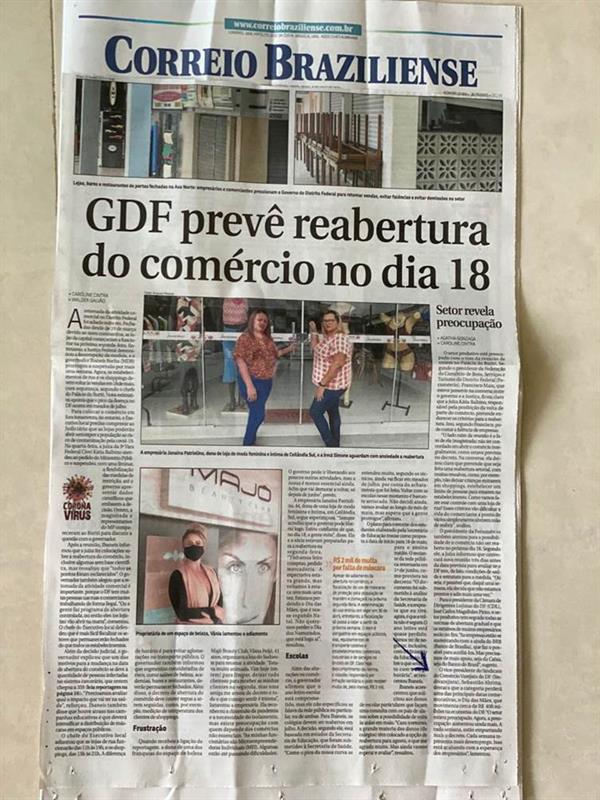 Matéria sobre previsão de abertura do comércio no dia 18/05 com depoimento do vice-presidente do Sindivarejista, Sebastião Abritta.