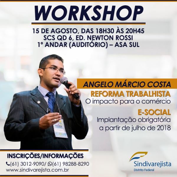 Devido às inovações da reforma trabalhista e da iminência da obrigatoriedade de implantação do e-social, o Sindivarejista irá promover um workshop abordando esses dois temas extremamente relevantes no momento atual para auxiliar os lojistas, contadores, contabilistas a evitar penalizações, multas e prejuízos.